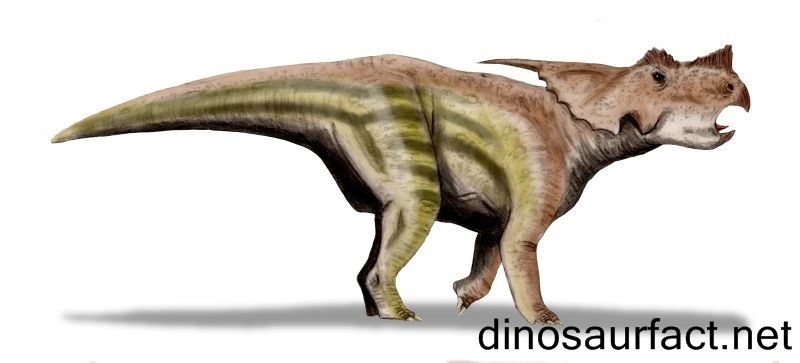 The Achelousaurus was herbivorous dinosaur and obtained its nourishment from low lying bushes and shrubs. It is unknown whether it could charge at high speeds like the modern day rhinoceros. Ceratopsids are believed to be dinosaurs that lived in herds. But there is no concrete proof backing these claims. Furthermore, some scientists believe that ceratopsids displayed sexual dimorphism. Again, there isn’t enough data to say this with certainty, and the fossils of the Achelousaurus do not show the presence of gender differentiation. If the Achelousaurus used its posterior horns for attack, it would need to lower its head so low that it would cease to see its predator. This is unlikely, yet not impossible.
