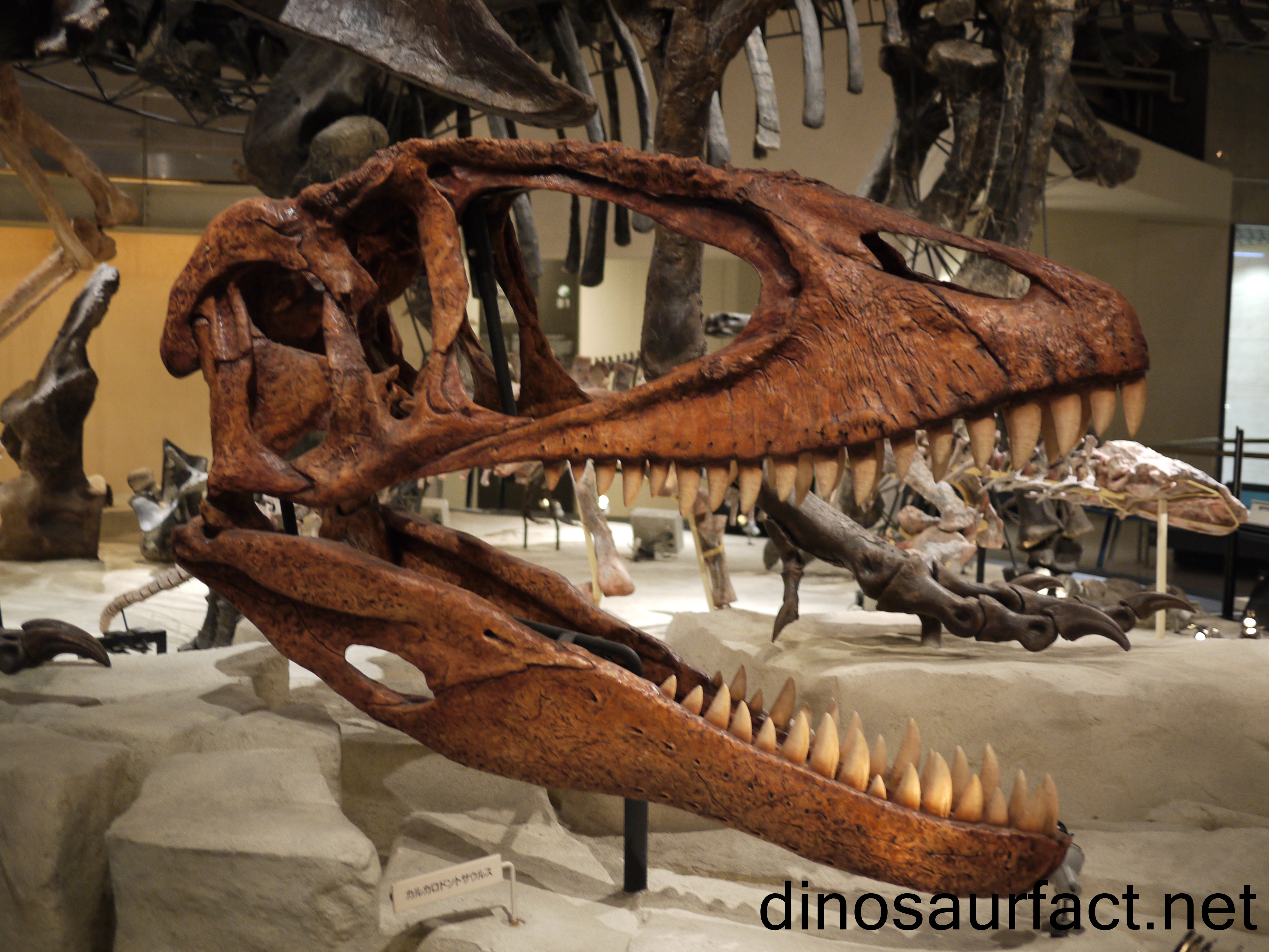 The skull of the Carcharodontosaurus was once believed to be the longest of all known theropods. However, it is now known that that Spinosaurus has the largest skull. The length of the same for the Carcharodontosaurus is about 5.3 feet.