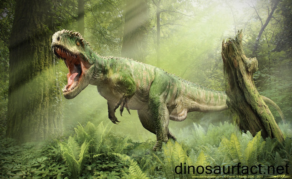 The Giganotosaurus was one of the largest carnivorous dinosaur to ever inhabit the earth. It is believed to be larger and longer than the Tyrannosaurus and about the same size as the Carcharodontosaurus, if not larger.