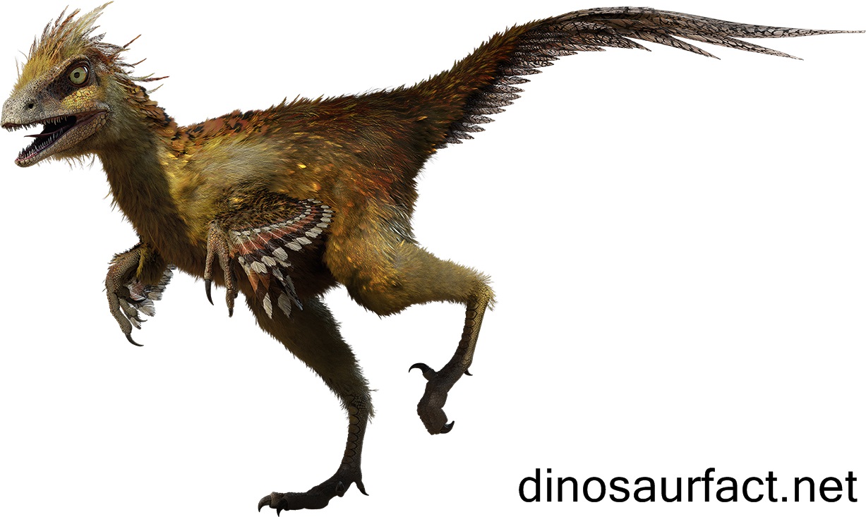 The hind legs of this dinosaur contained the sickle claw of the raptors that did not touch the ground while it walked.