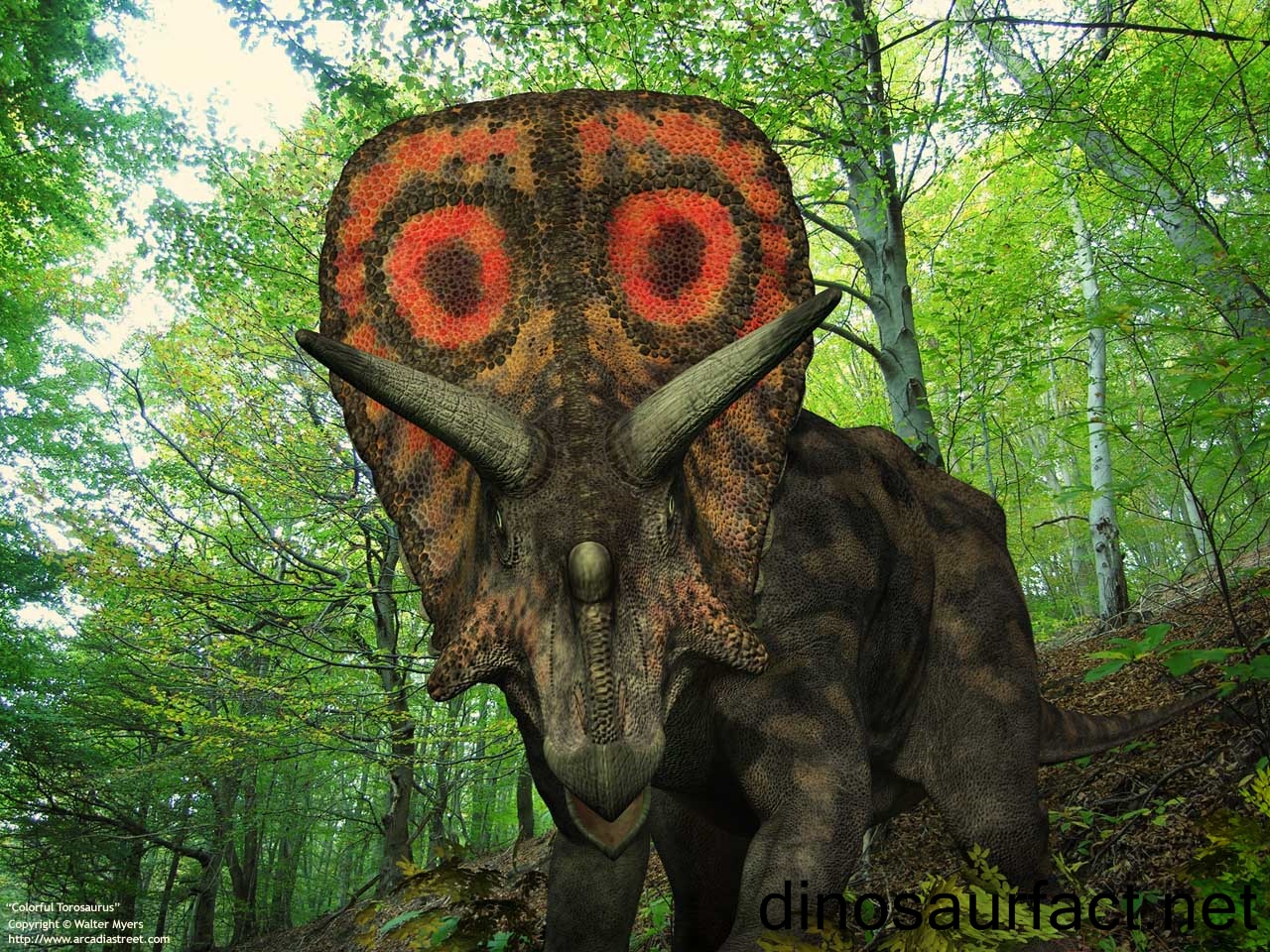 Just for fun we have a soundclip available for you to hear what a Torosaurus could've sounded like. Click to the Dinosaur Sounds area to hear it. Please note that the dinosaur sounds are only for entertainment and are not an actual fact.