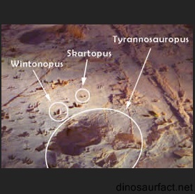 Unfortunately, information on Tyrannosauropus is scarce. It belongs in an as-yet-unamed genus & is known from 50cm (1.5 foot) footprints in Winton, a region of Queensland, Australia. The prints were discovered alongside the footprints of Wintonopus, an ornithopod & Skartopus, a small coelurusaur. These tracks are believed to have been made in a stampede, possibly caused by the Tyrannosauropus itself, all living in the late cretaceous. Tyrannosauropus is certainly a theropod & very probably a carnosaur, despite its name. Tyrannosauropus is believed to be roughly the size of a North American Allosaurus, another carnosaur that also may have lived in Australia, albeit smaller than the species than lived in other parts of the world.