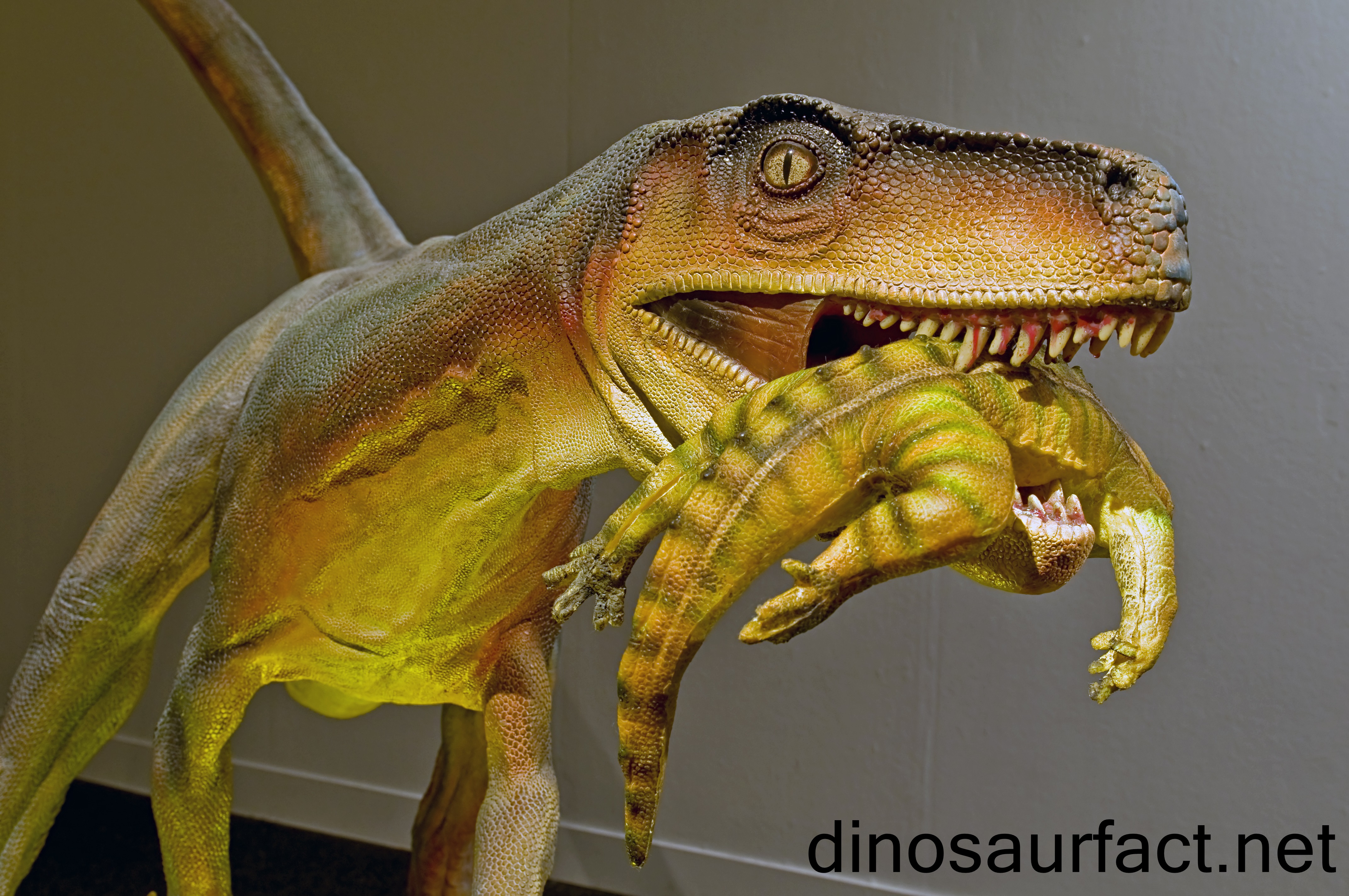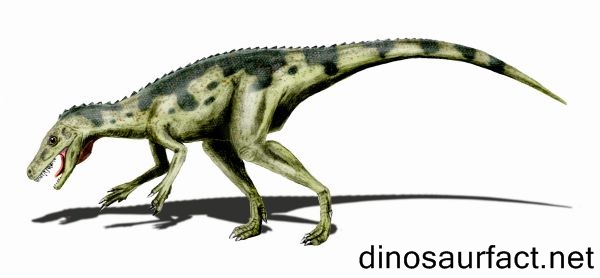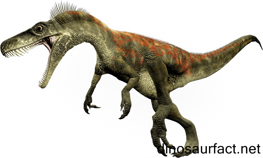 The dinosaurs forelimbs were not even half the length of its lower limbs. The forearm and upper arms were short while the hand was elongated. The first two fingers along with the thumb had curved claws. The dinosaur was fully bipedal with short thighs and large feet. The foot, despite having 5 toes only used the middle three for supporting the creature’s weight. The tail provided balance and also helped speed.