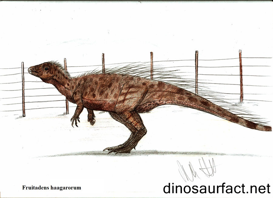 Fruitadens has been classified as an ornithopod, and is believed to have been a much smaller relative of heterodontosaurus. Fruitaden belonged to heterodontosaurids, which were one of earliest species of dinosaurs to have evolved. However, Fruitadens Haagarorum is a more recent or shall we say a latterly evolved member of this family. Heterodontosaurids also had the similar unusual combination of teeth like the Fruitadens Haafarorum. The more recent Fruitadens evolved to be smaller and have a more generalized and varied diet. The accepted classification of Fruitadens is Animalia, Chordata, Sauropsida, Dinosauria, Ornithischia, Heterodontosauridae, Fruitaden.