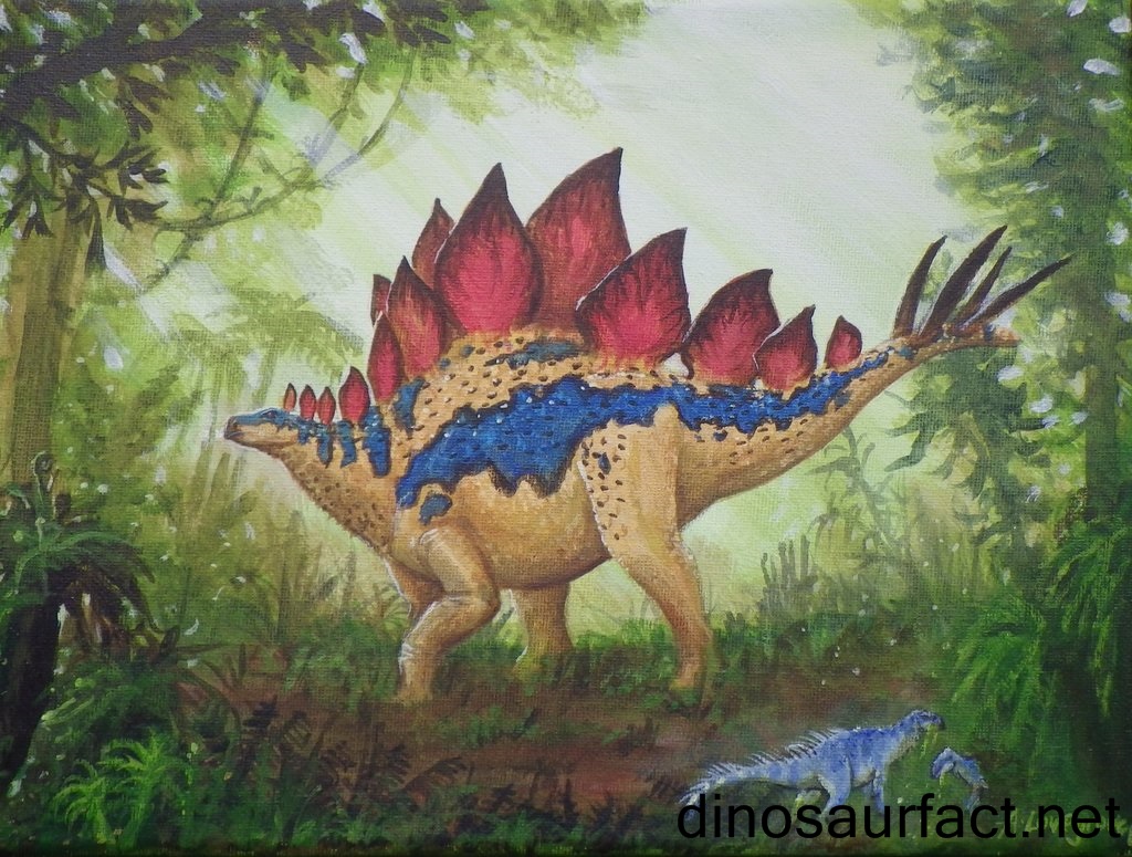 Stegosaurus pronounced steg-oh-sore-us as the name suggests indicates covered lizard or roof lizard. These dinosaurs were believed to inhabit the woodlands of the western part of North America. Stegosaurus was believed to exist during the late Jurassic age approximately a hundred and fifty million years ago. These gentle giants were generally herbivorous by nature. They had a characteristic presence of two rows of large bone like plates on their back and a tail that had spikes. Their head was generally small when compared to their body size. The gait of the Stegosaurus was generally low hung and it had a brain that was the size of a walnut.